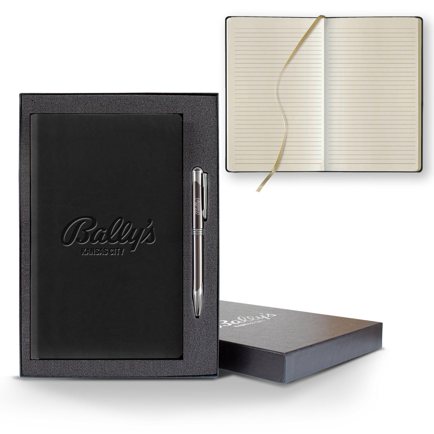 Elevate your brand by customizing this Medium Ivory Slim Journal with your company name, logo or marketing message! Measuring 5 1/4″ x 8 3/8″, this handy note-taker features 192 ivory pages with gray lines, a gold ribbon marker, rigid cover, and comes with a sleek black gift box and black or gunmetal pen (red, white, and blue pens also available upon request). It makes a great giveaway that is sure to remind recipients of your company’s customer service, plus it will put your message in front of them on a daily basis! FSC MIX 70% CQ-COC-000479. 5.25″ W x 8.375″ H x 0.325″ D